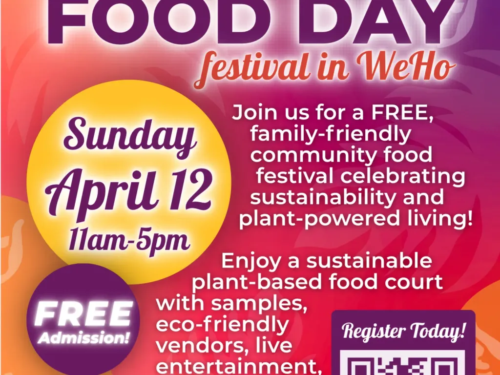 when: 12 Apr 2026 | venue: Plummer Park | cost: Free | address: 7377 Santa Monica Blvd., West Hollywood 90069Plant Based Treaty is presenting our 2nd annual Food Day Festival in WeHo. A FREE family friendly community festival celebrating sustainability and plant- powered living! Enjoy a sustainable plant based food court with samples, eco friendly vendors, entertainment, and family fun zones.